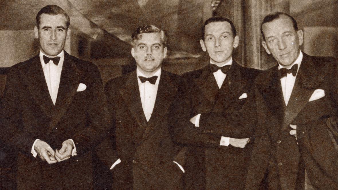 Gay or bisexual MPs Jim Thomas (Anthony Eden’s PPS), Bob Boothby and Ronnie Cartland with Noël Coward
