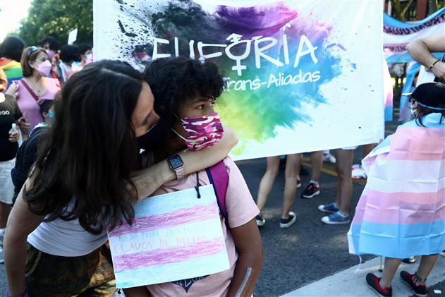 Placard reads, “Trans law now”. Photo: Reuters / Susana Vera