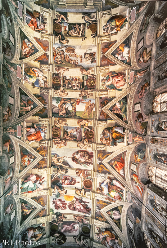 Using the Sistine Chapel ceiling measuring roughly 8611 square feet as a canvas, Michelangelo Buonarotti showcased his potential as a painter for everyone to see. His heavily populated compositions recount events from the Old and New Testaments from the story of Creation to the Last Judgment. It is arguably one of the most famous works of art in the world.