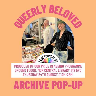 Pop in to Manchester Central Library on Thursday, 24 August (11.00am – 2.00pm) to see items from the archives produced by the Pride in Ageing programme at the LGBT Foundation.