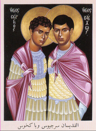 Saints Sergius and Bacchus are ancient Christian martyrs who were tortured to death in Syria because they refused to attend sacrifices in honour of Jupiter.