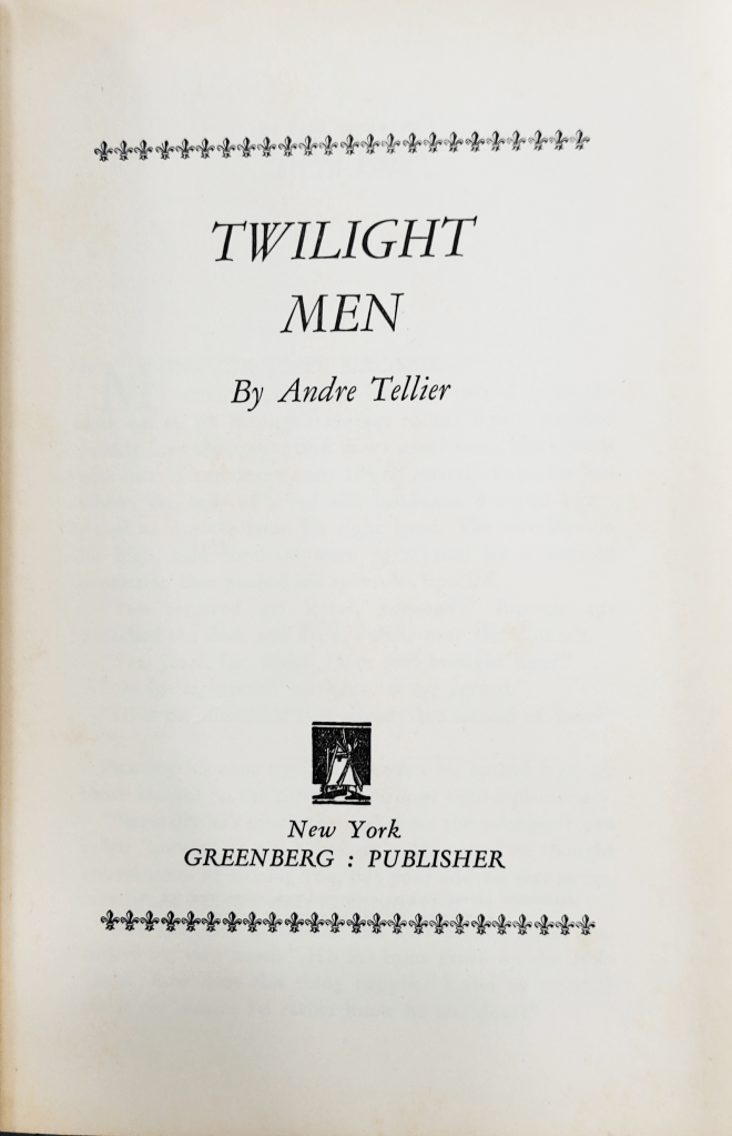 André Tellier’s second novel was launched on 27 January 1931 by Greenberg, New York as a 338-page volume. It flew through at least seven prints and sold over 40,000 copies. The novel is a clichéd and dramatic story of the queer experience.