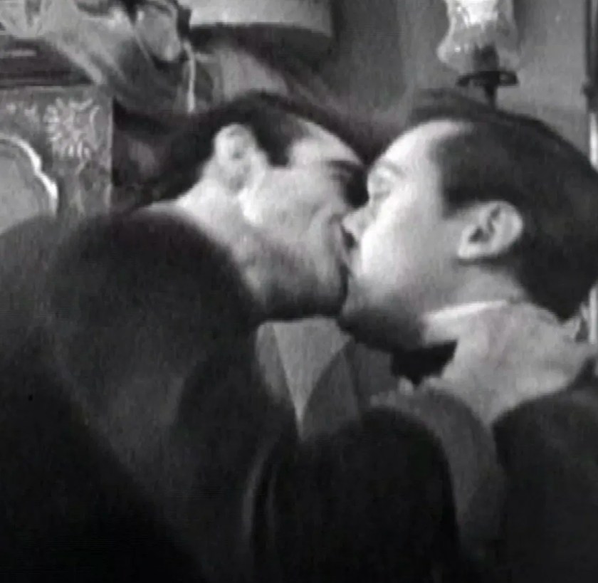 During the fall of Babylon sequence in “Intolerance” (1916), two male warriors kiss quite passionately on the lips, when they realise they are both about to be killed in a losing battle.
