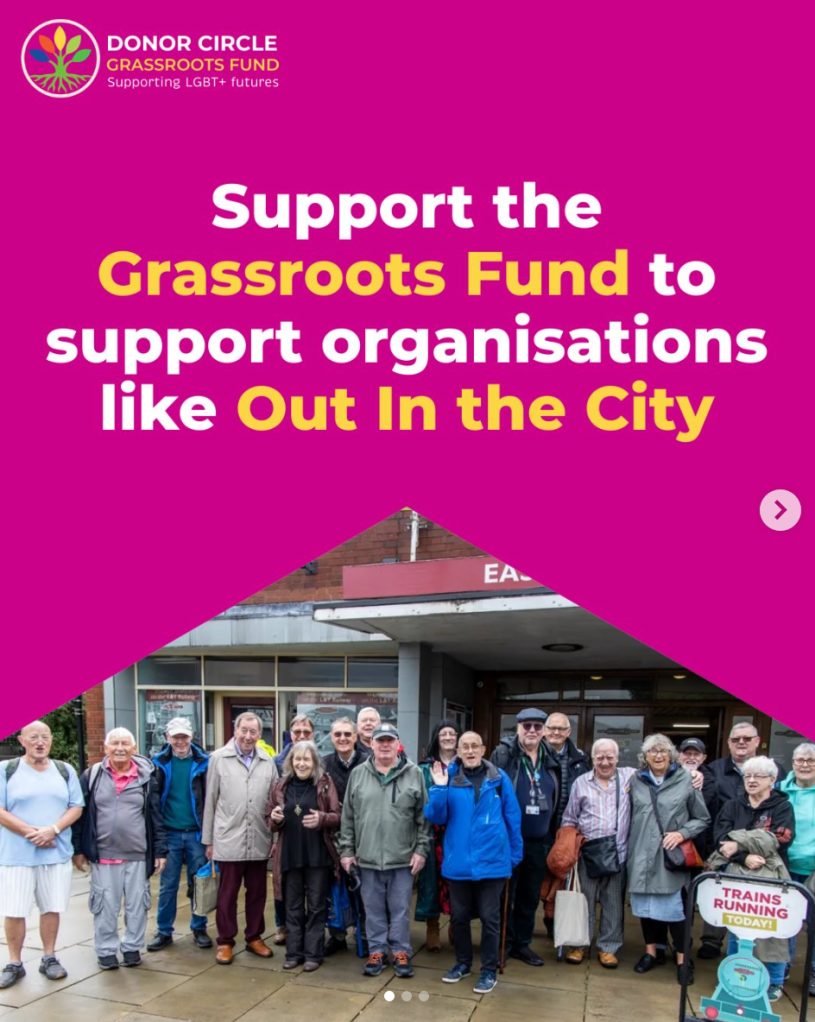 When you donate to the LGBT+ Fund you help us resource some amazing LGBT+ charitable and volunteer led organisations like Out in the City Manchester.