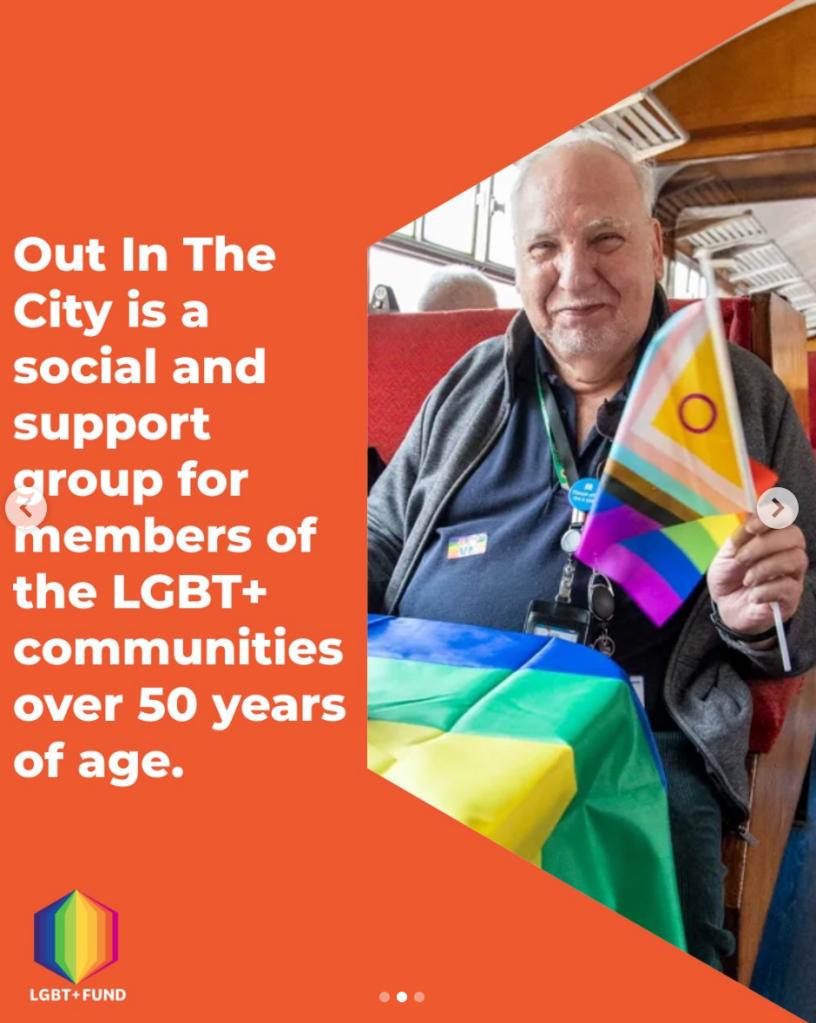 Out In The City is a social and support group for members of the LGBT+ communities over 50 years of age.