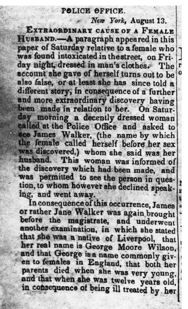 In August 1836, the New York police arrested a man who had been born female. Initially it looks like he lied to the police about his name “James Walker”, and background.