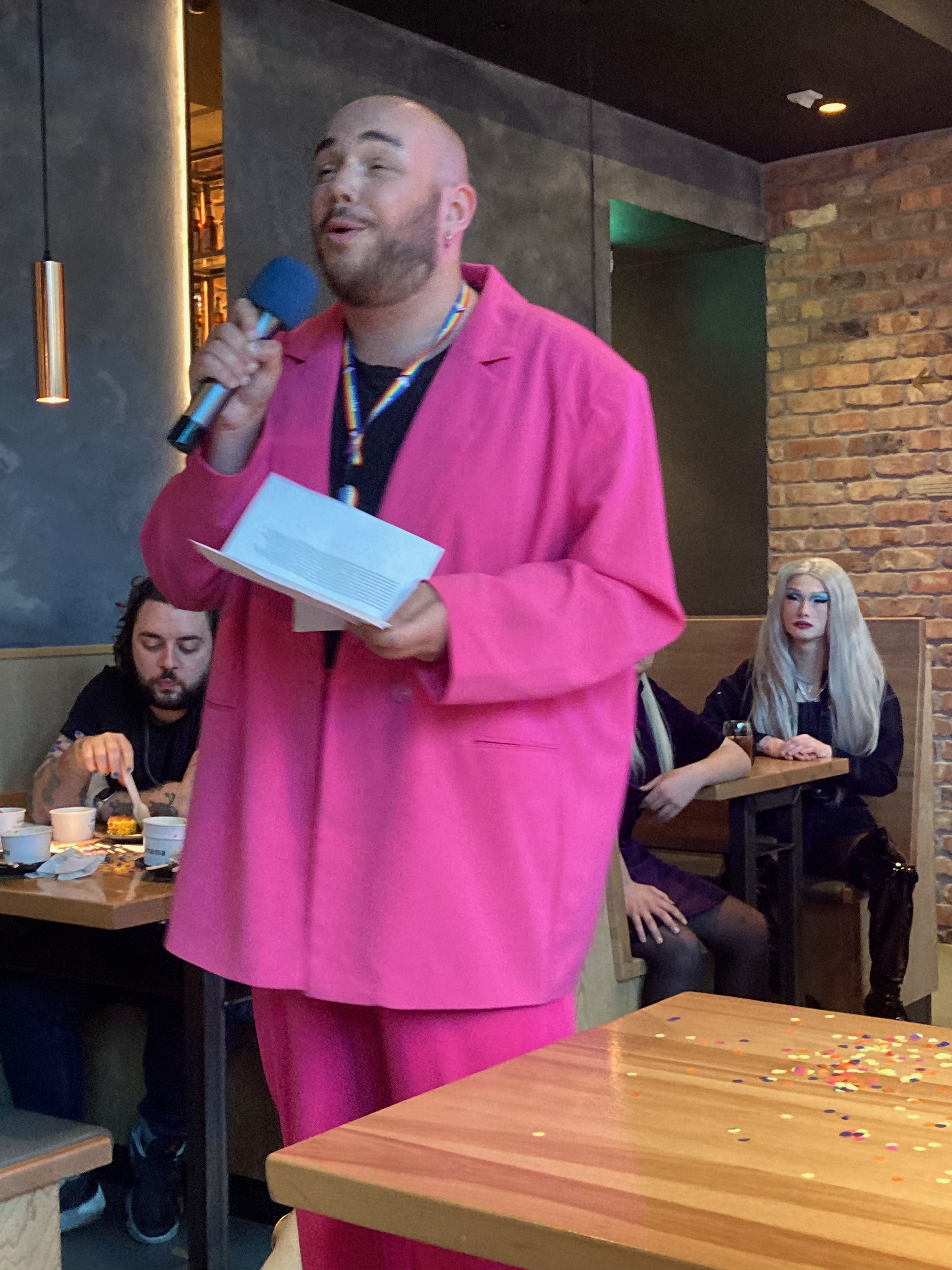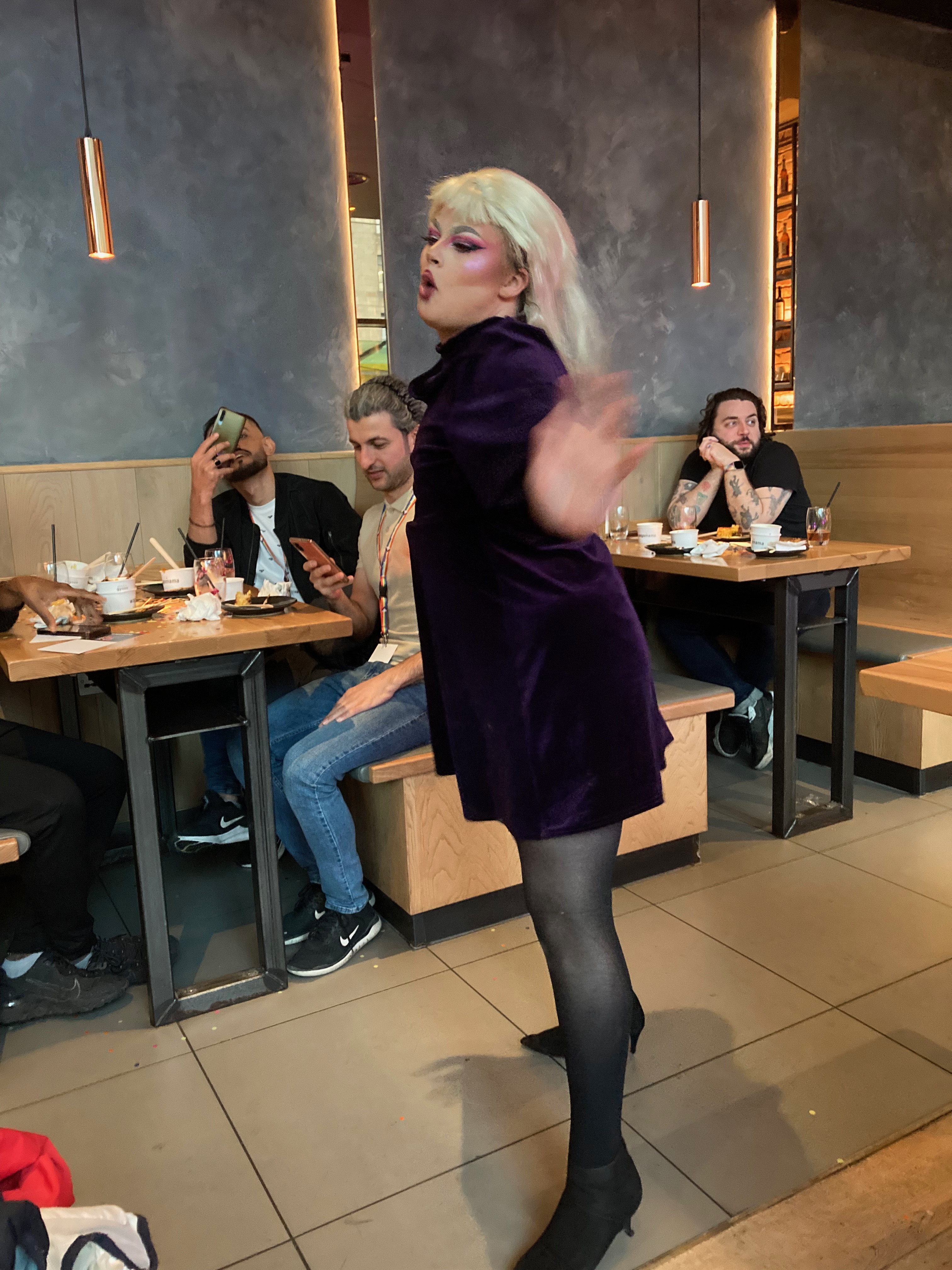 The evening was called “Proud Beyond Pride”. We enjoyed some delicious free Wagamama food and drinks, whilst entertained by performances from some super talented Youth Pride members including lip syncs and spoken word. There was a guest appearance from drag queen Snow White Trash.