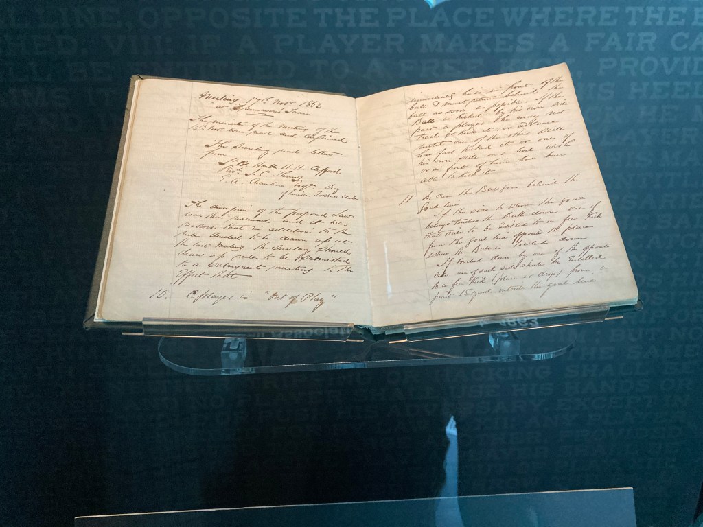 The laws were drafted in a London pub, and the wobbly writing shows the obvious effects of the beer drunk when drafting the rules.