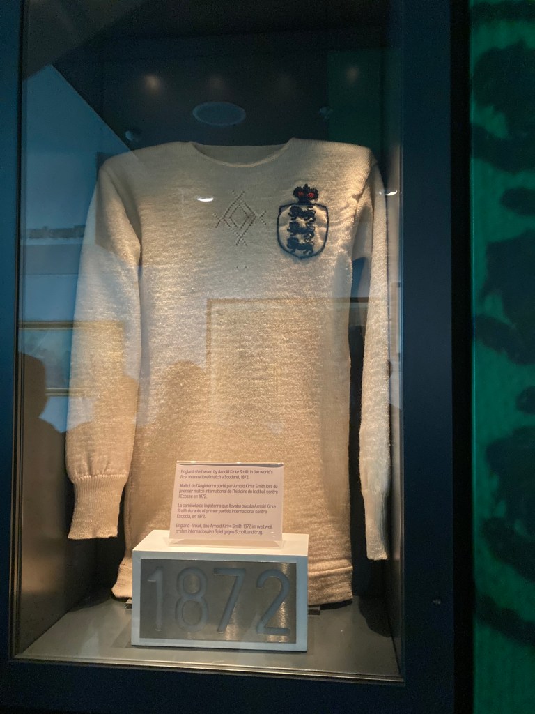 Also on display is the England shirt worn by Arnold Kirke Smith in the world’s first international match versus Scotland in 1872.