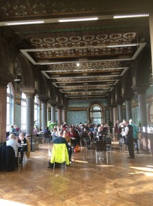 A visit to the Art Gallery showed off a fantastic cafe. The spacious cafe with grand marble columns, stunning ornate tiles and a barrel-vaulted mosaic ceiling was magnificent, but unfortunately, we had just eaten. Most of the exhibits in Leeds Art Gallery were modern art and most of us prefer the traditional.